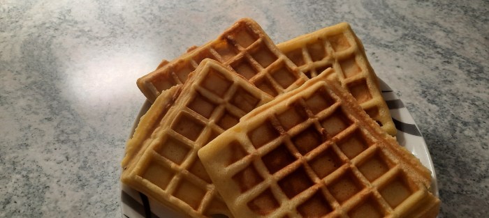 Also hab ich mich in die Küche gestellt und zum kombinierten Frühstück/Mittagessen Waffeln gebacken….