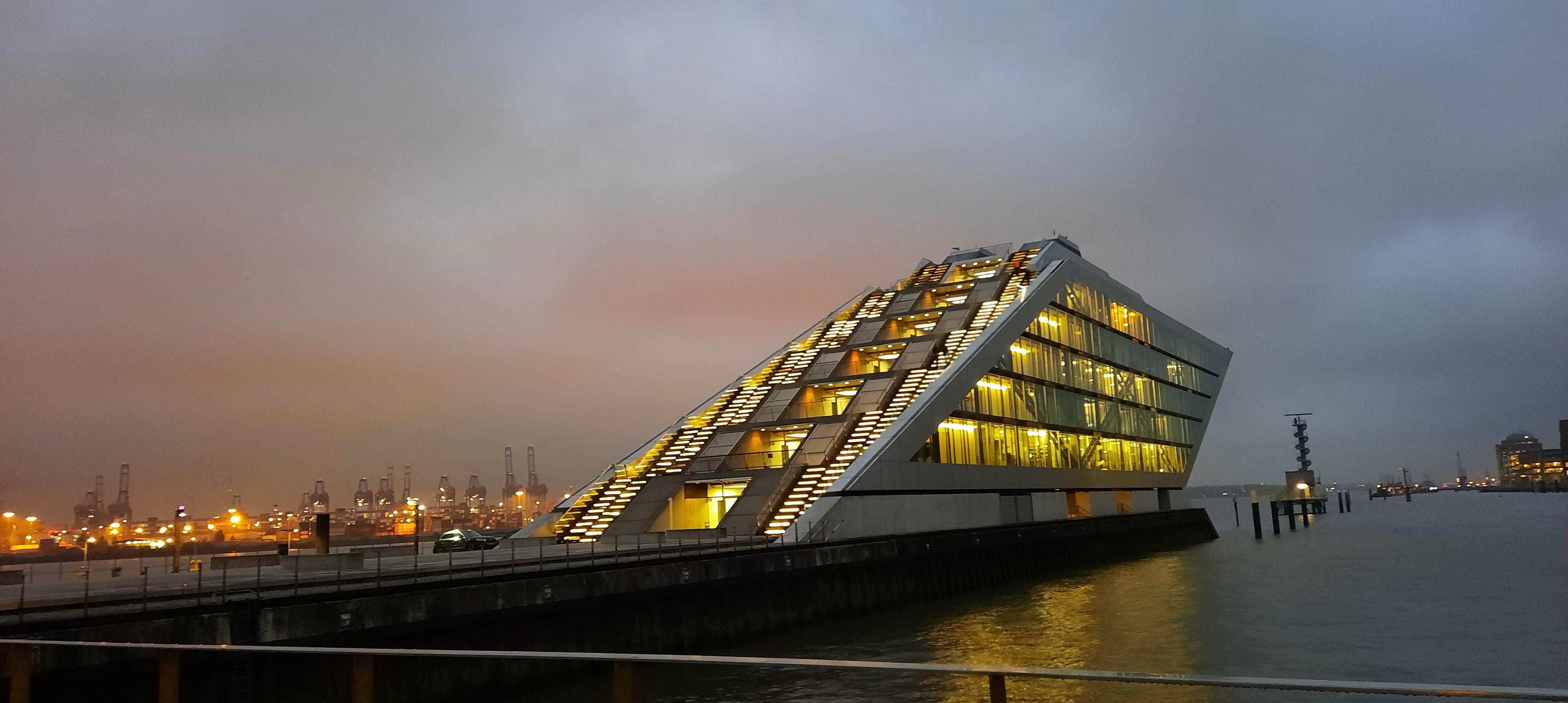 Von oben hab ich auf den Hafen geschaut und ja diesen Büro-Komplex hab ich schon mehrfach bei Tageslicht gesehen:
