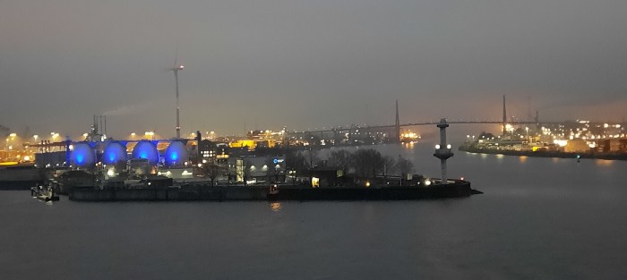 Und es war auch zuerst ein toller Ausflug….dunkel aber ohne Nebel konnte ich die Lichter und Industrieanlagen auf der anderen Seite der Elbe viel besser erkennen: