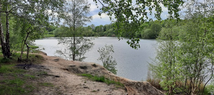 Oben am Kopfende des Sees wurde der Weg immer schmaler und unzugänglicher…und alle paar Meter standen Schilder eines Kieswerks oder etwas ähnlichem, die das Gelände dahinter als Firmengelände auswiesen….aber der Weg ging trotzdem weiter und wie gesagt….es sah einladend aus weil es Zugang zu flachem Wasser gab…
