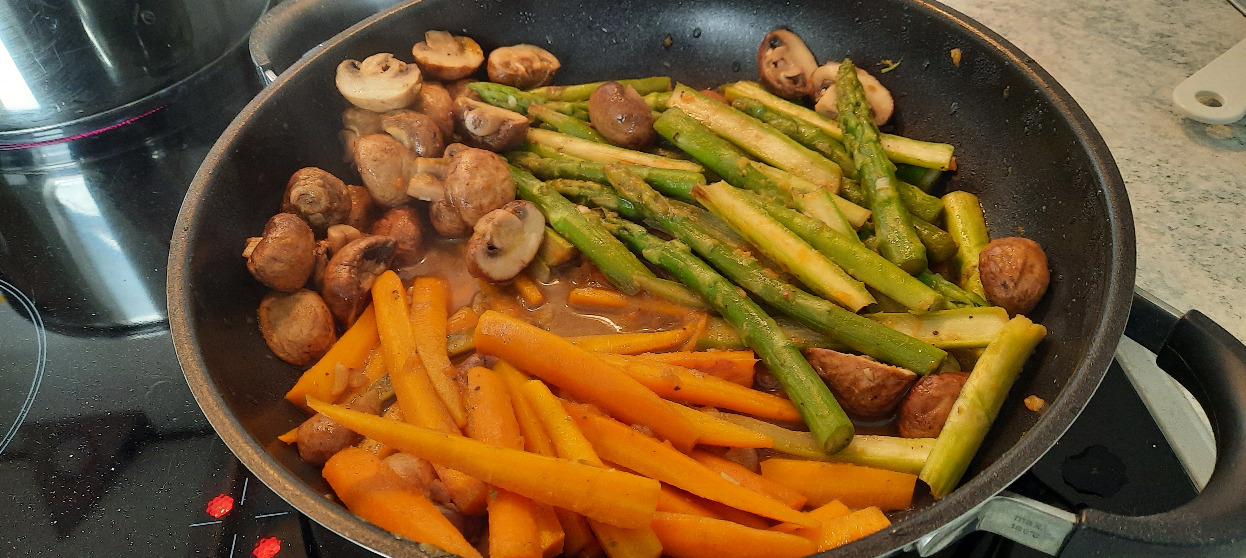 Bei meiner heutigen Gemüsepfanne hab ich den Staudensellerie endlich verarbeitet….klein geschnitten und mit dem restlichen Gemüse zusammen gebraten….und Reis dazu…eigentlich ein perfektes Mittagessen.