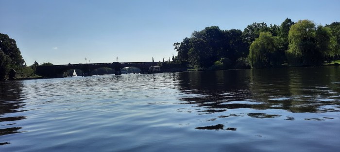 Obwohl schon relativ schnell Kanus, Kajak, Sandup-Paddler, Tretboote, Sportruderer in Einer, Vierer oder Achter-Booten und sogar ein paar Schwimmer unterwegs waren und sogar eines dieser flachen Ausflugsschiffe….war es nicht zu voll….Die meiste Zeit war es schön ruhig und entspannt….und ich konnte endlich auch mal sehen, wie geübte Kajakfahrer mit dem Doppelpaddel umgehen.