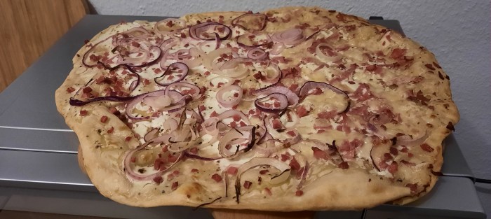 Hmmm da muss ich mir noch etwas anderes einfallen lassen…Flammkuchen für 5 Personen bekomme ich mit meinem Backofen nicht gleichzeitig fertig…werde noch einen Eintopf oder eine Paella machen….mal sehen, was mir da noch für Ideen kommen.