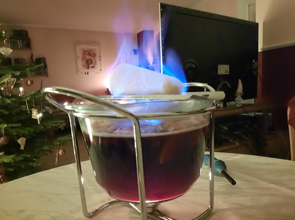 Nachdem wir uns nach dem Spaziergang in trockene Klamotten geworfen hatten, wurde es Zeit für die Silvesterfeier…die Feuerzangenbowle kam auf den Tisch und ich hab die „Mitternachts-Snacks“ ausgepackt….wir haben uns ruhig und trotzdem angeregt und lustig weiter unterhalten