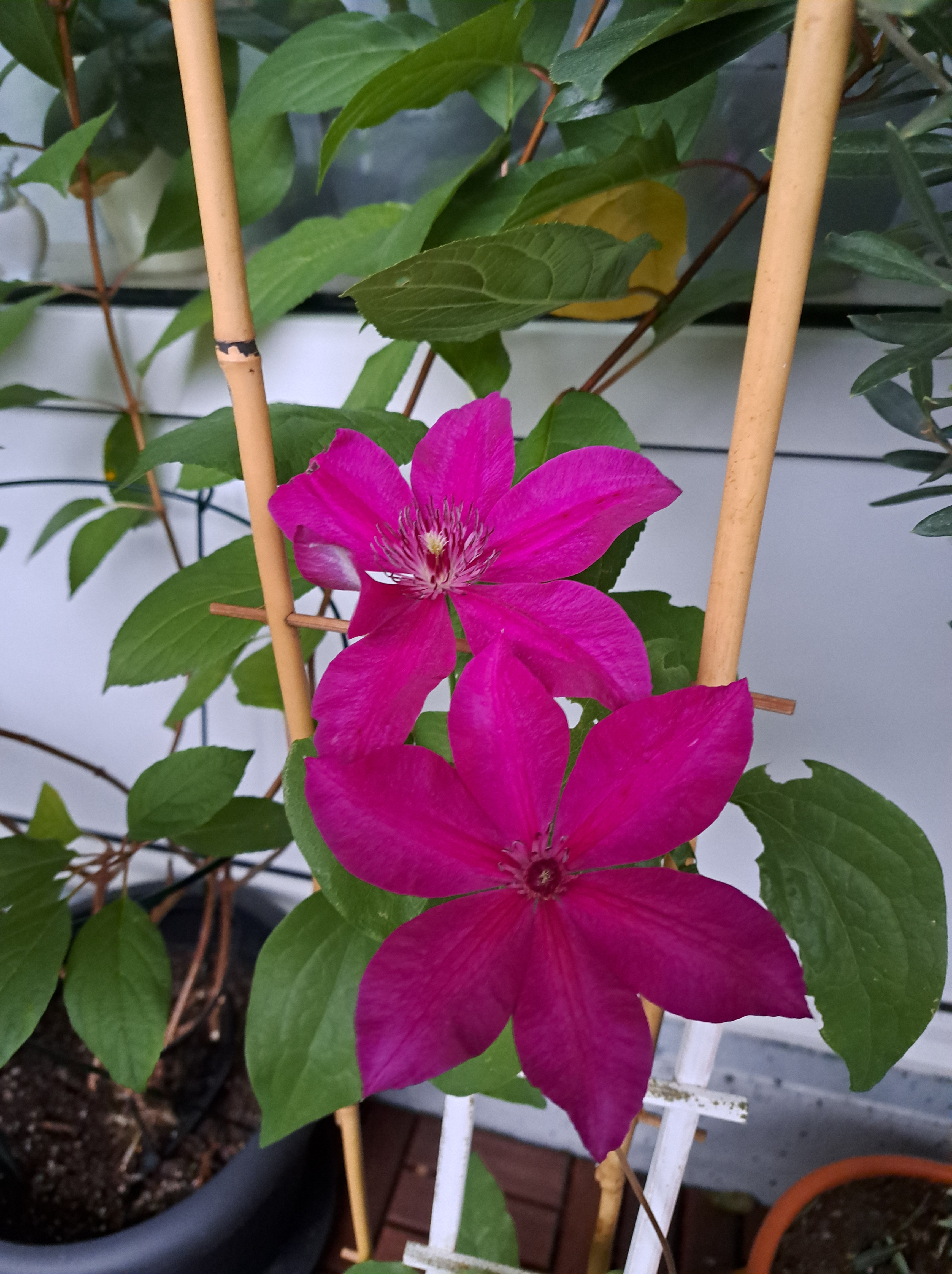 Auf meinem Balkon blüht gerade das 2.Mal die Clematis…aber bald muss ich den Balkon winterfest machen: