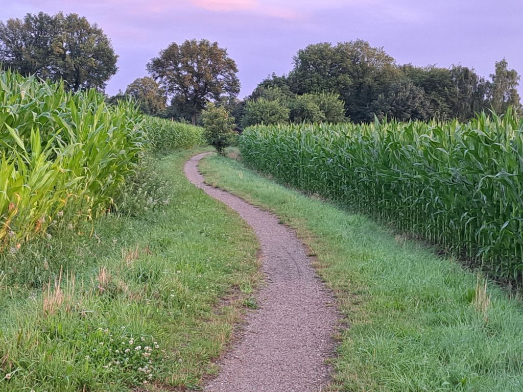 Das Wetter ist durchwachsen…aber der Mais steht schon wieder schön hoch und so machen meine Walkingrunden auch wieder mehr Spaß, wenn es zwischen den Feldern hindurch geht.