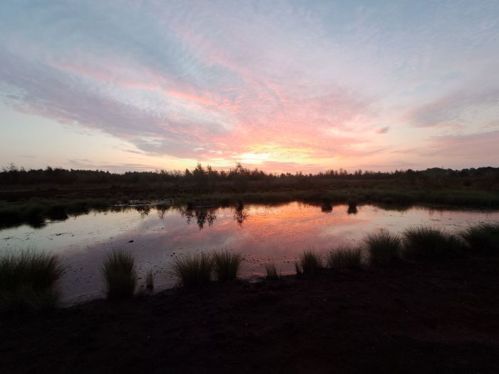 Um kurz nach 6 Uhr, vor Sonnenaufgang war ich dann mit meinem gefüllten Kaffeebecher im Himmelmoor…Mein Auto war das Einzige auf dem Parkplatz.