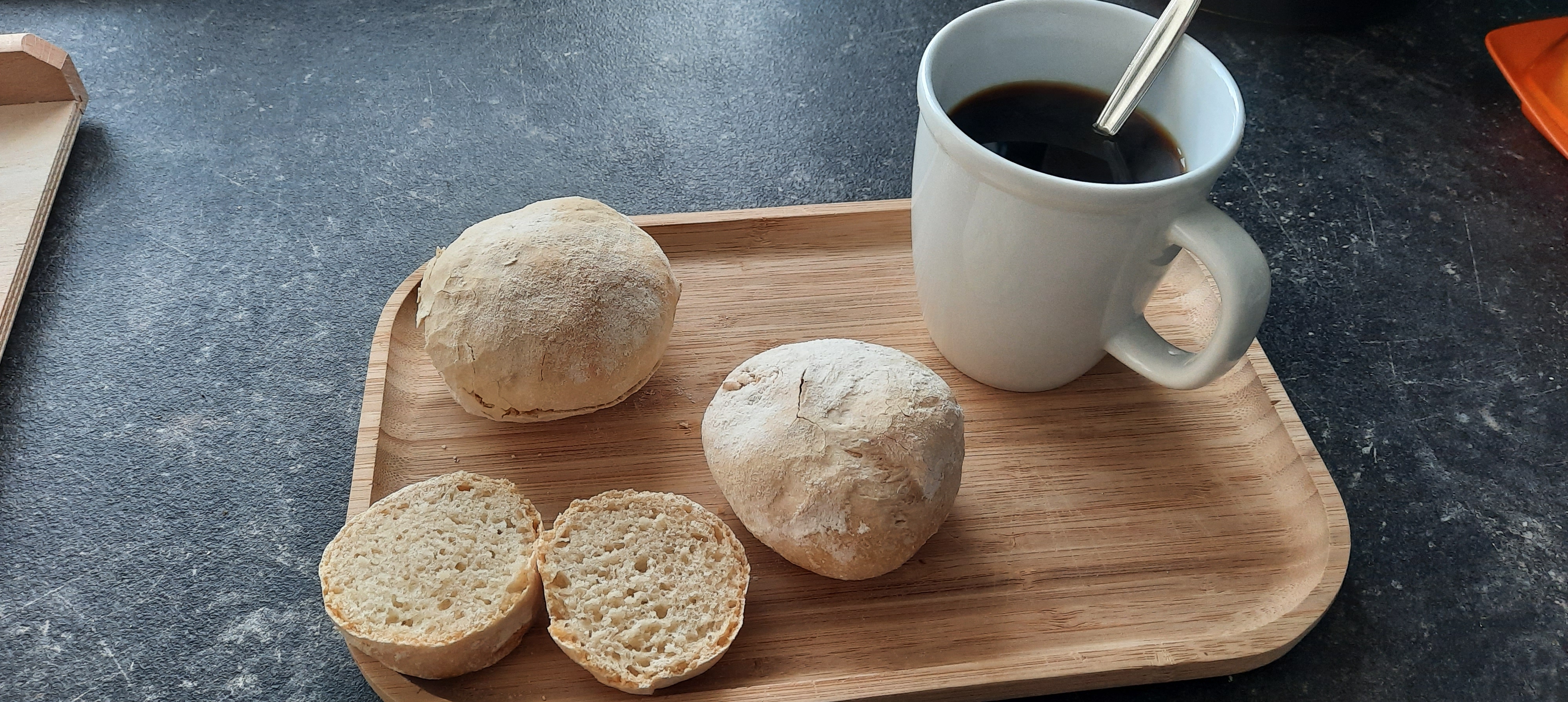 Aus dem restlichen Brotteig (Weizenmehl-Sauerteig) hab ich kleine Baguette-Brötchen für das Frühstück gebacken.