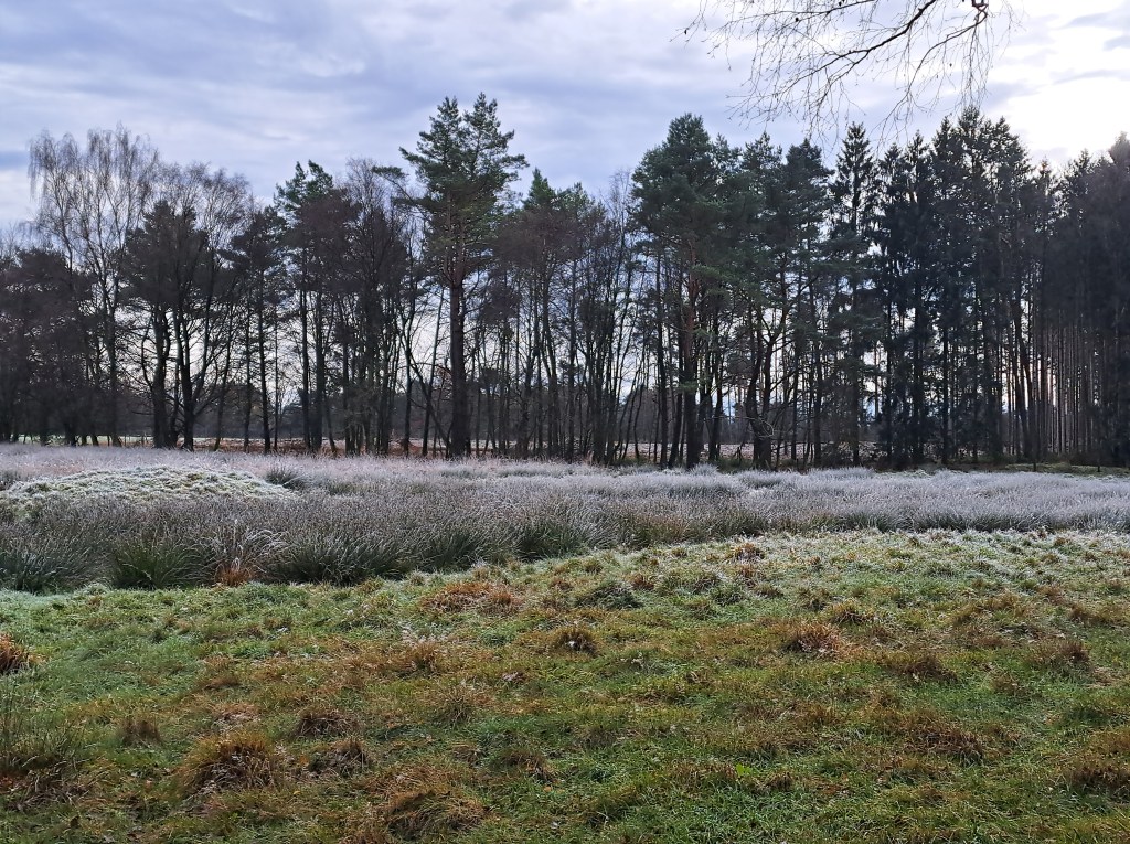 Bei knappen 2 Grad, Windstille, mit noch gefrorenem Boden und Raureif auf den Feldern ging es für 2 Stunden durch das Alsterquellen-Tal, durch die Naturschutzgebiete: Oberalsterniederung und streifte noch das Henstedter Moor….es war sooo friedlich, still und stimmungsvoll…und Sonne gab es auch.