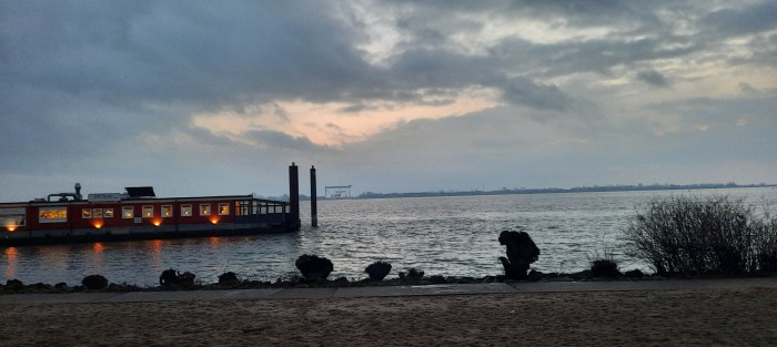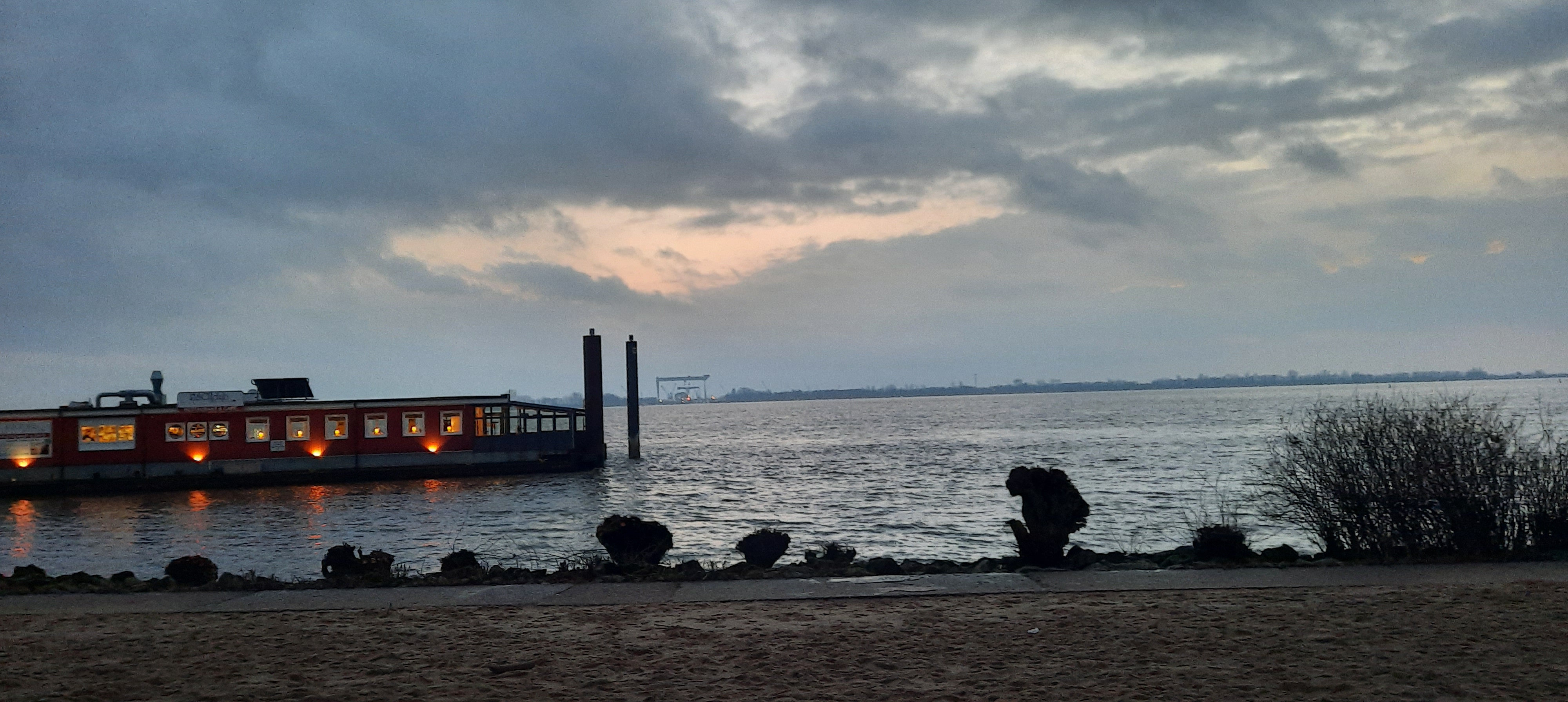 Bei beginnendem Sonnenuntergang und klarer, kalter Luft war es ein herrlicher Spaziergang…erst oberhalb von Blankenese über den Elbhöhenweg und später dann direkt am Wasser entlang…
